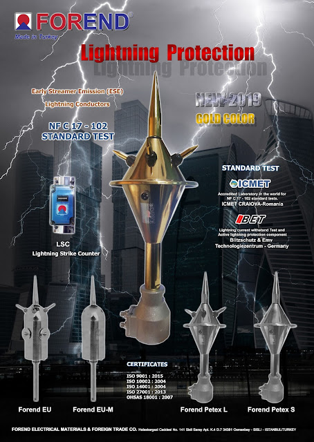 ระบบป้องกันฟ้าผ่า, หัวล่อฟ้า (Lightning Protection System) แบบ Early Streamer Emission System (ESE)    ยี่ห้อ FOREND, PROTART  มีรัศมีครอบคลุมตั้งแต่ 48-107 เมตร วัสดุทำจากสแตนเลส (Stainless Steel)